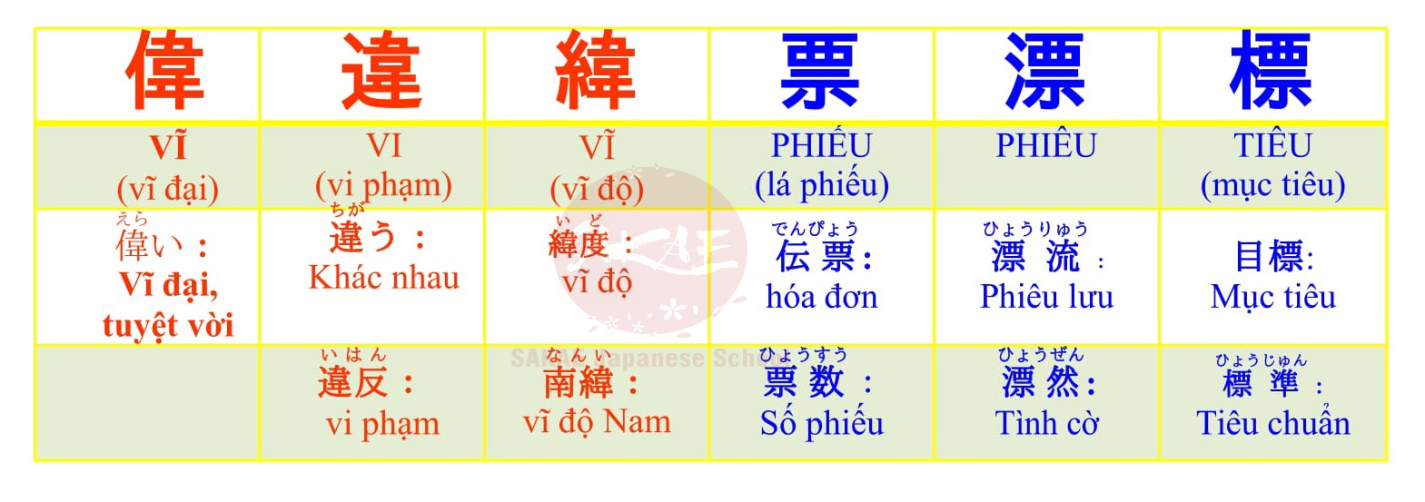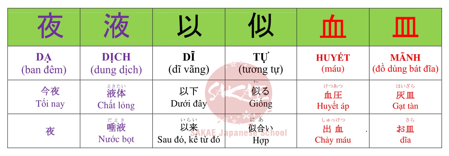 kanji trong tiếng Nhật có rất nhiều từ giống nhau đến 90% tuy nhiên ý nghĩa lại khác xa nhau, chính vì vậy gây ra rất nhiều sự nhầm lẫn trong quá trình sử dụng đặc biệt trong lúc làm bài thi tâm trạng rối bời, thời gian lại không có. Để sử dụng đúng từ đúng chổ hôm nay sakae sẽ giúp bạn phân biệt những chữ kanji giống nhau chỉ cần thêm 1 nét bớt 1 nét ý sẽ thành các chữ các nhau.